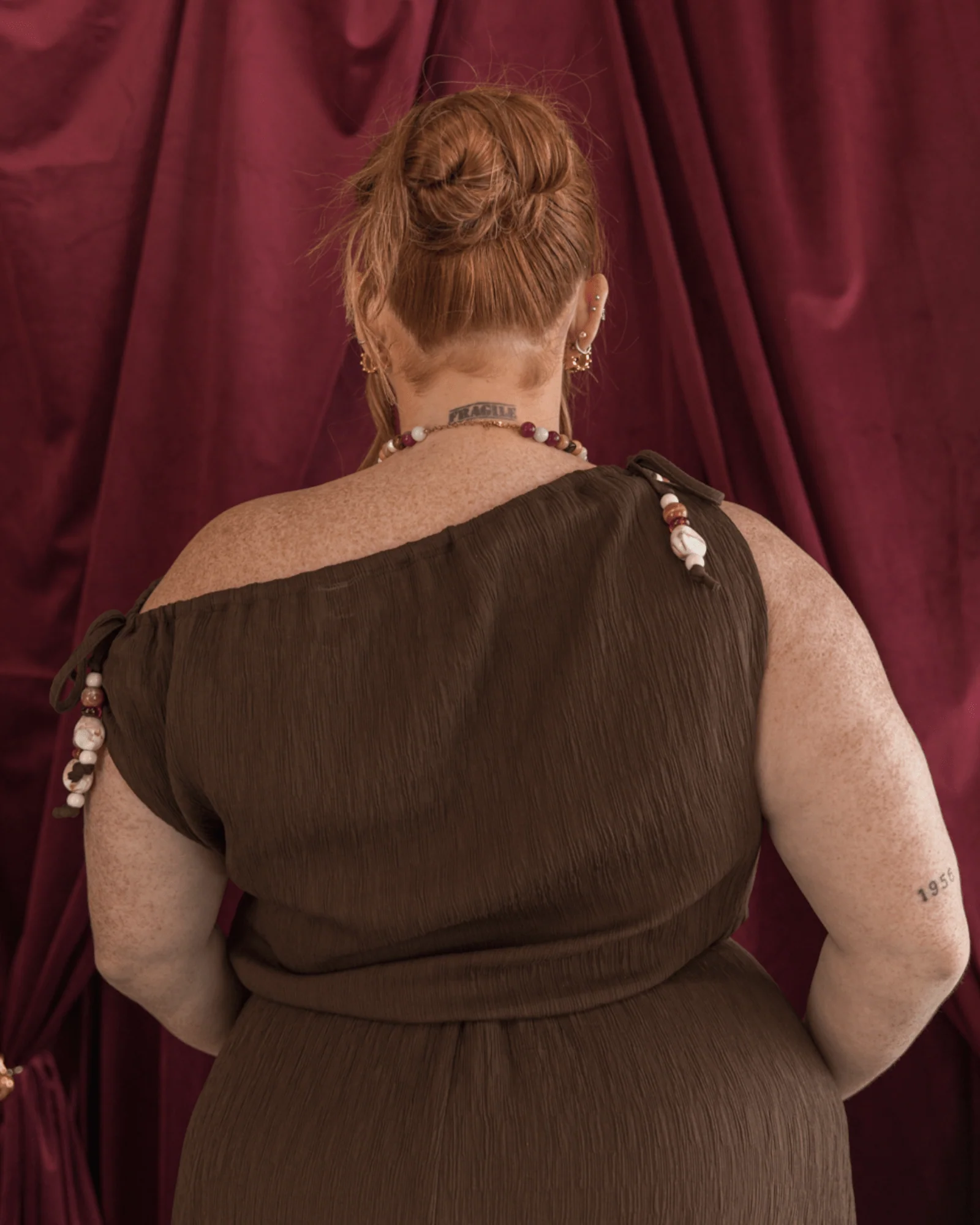 Alara features a one shoulder neckline with adjustable ties that let you customise the fit to your body, your comfort and your mood. The ties are finished with gorgeous beaded details that add a playful touch, giving the top a little personality while still keeping it easy to wear for everyday life.