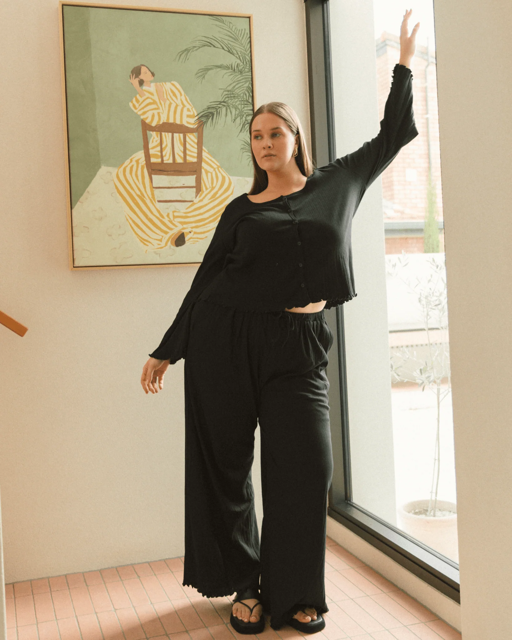 These are the kind of pants you put on “just for now”… and end up wearing all day. The Ava Pointelle Pants are super soft with a flattering wide-leg fit and delicate frill edging. The stretch waistband is roomy and forgiving—ideal for postpartum bodies or anyone who just wants to feel comfy without compromise. Pair with the matching Ava Top for that effortlessly put-together vibe.