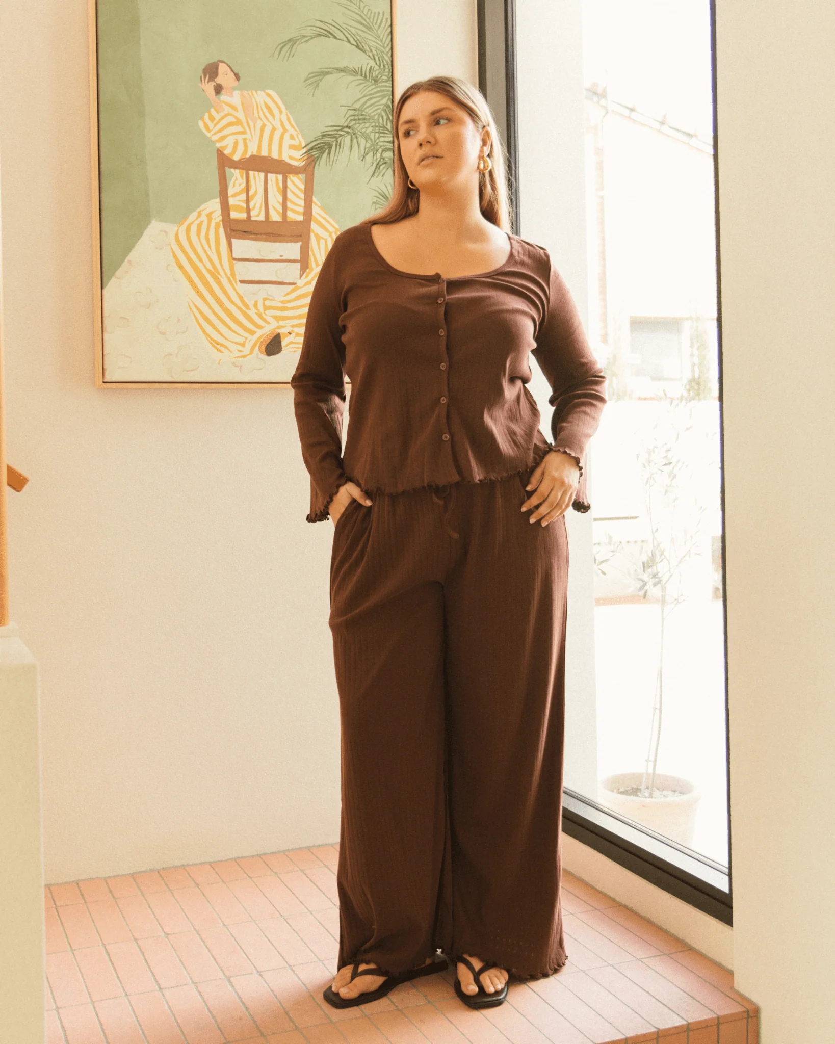 These are the kind of pants you put on “just for now”… and end up wearing all day. The Ava Pointelle Pants are super soft with a flattering wide-leg fit and delicate frill edging. The stretch waistband is roomy and forgiving—ideal for postpartum bodies or anyone who just wants to feel comfy without compromise. Pair with the matching Ava Top for that effortlessly put-together vibe.