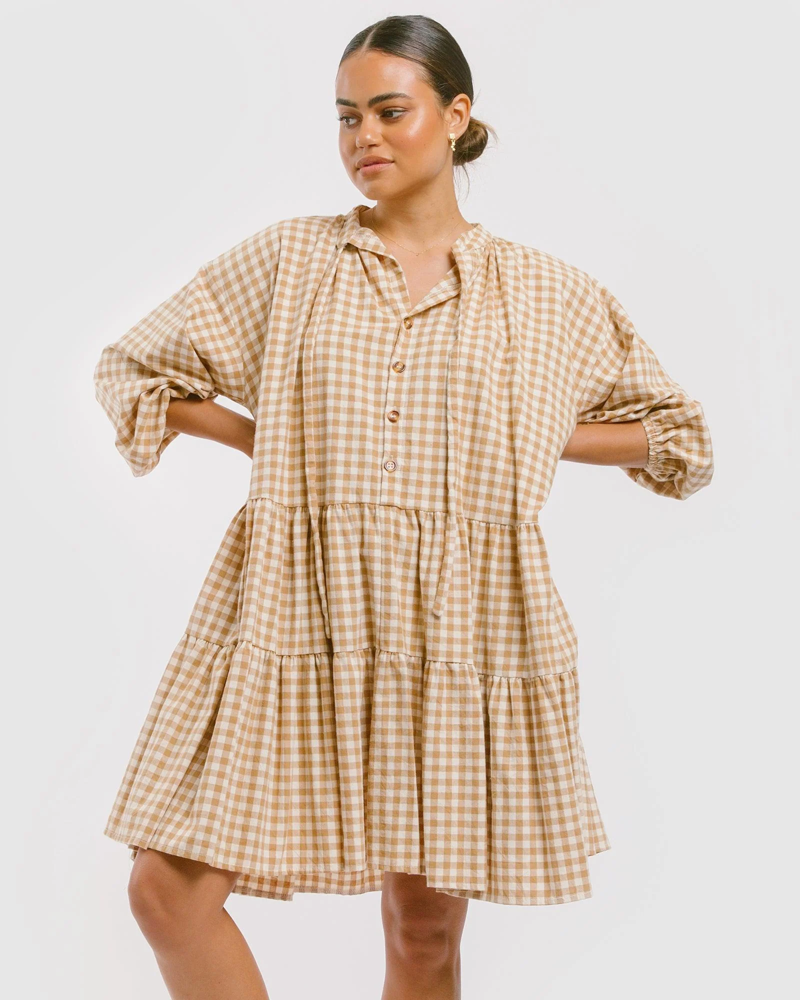 Avalon Smock Dress | Caramel Gingham