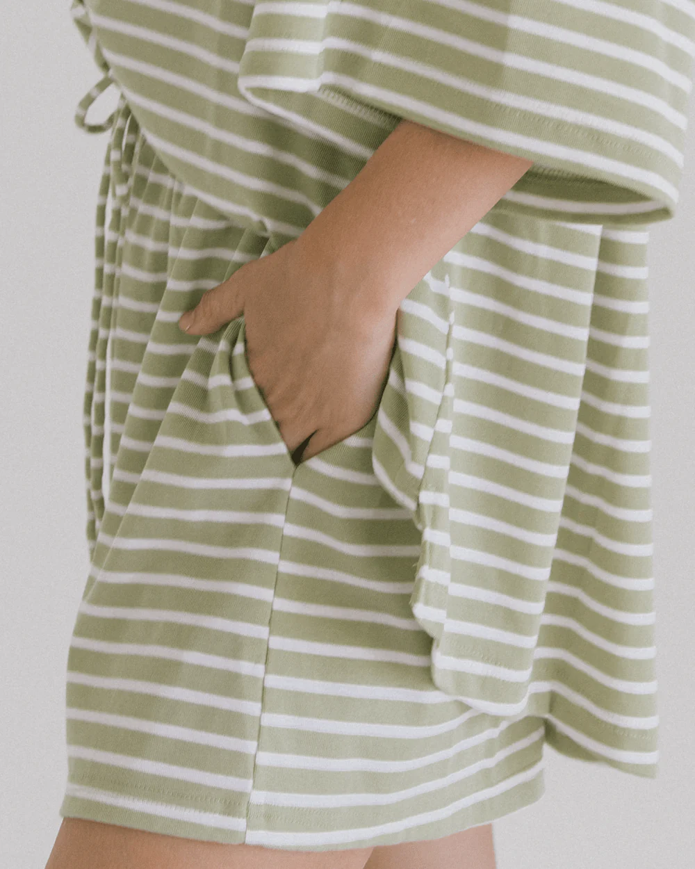 Meet your new throw on, live in, never want to take off shorts. The Essentials Shorts in Green Stripe are made from our ultra soft 92% Tencel and 8% Spandex blend, giving you that cool, breathable, stretchy comfort that feels good from morning to night. If you love the matching Lacey Shirt or the Essentials Pants, these are the cute little sister you absolutely need.
