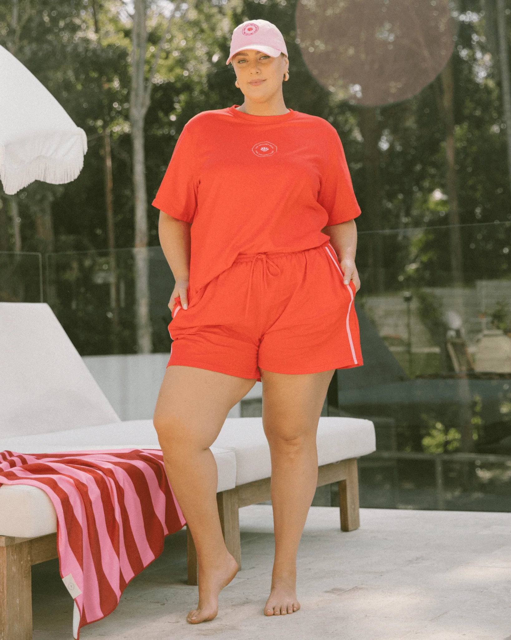 These aren’t just any lounge shorts. Ridiculously soft & stretches in all the right places and stays breathable when life gets a little sweaty. The high-rise elastic waist is there to love you through every snack break, toddler wrangle and “I forgot we had swimming today” moment.