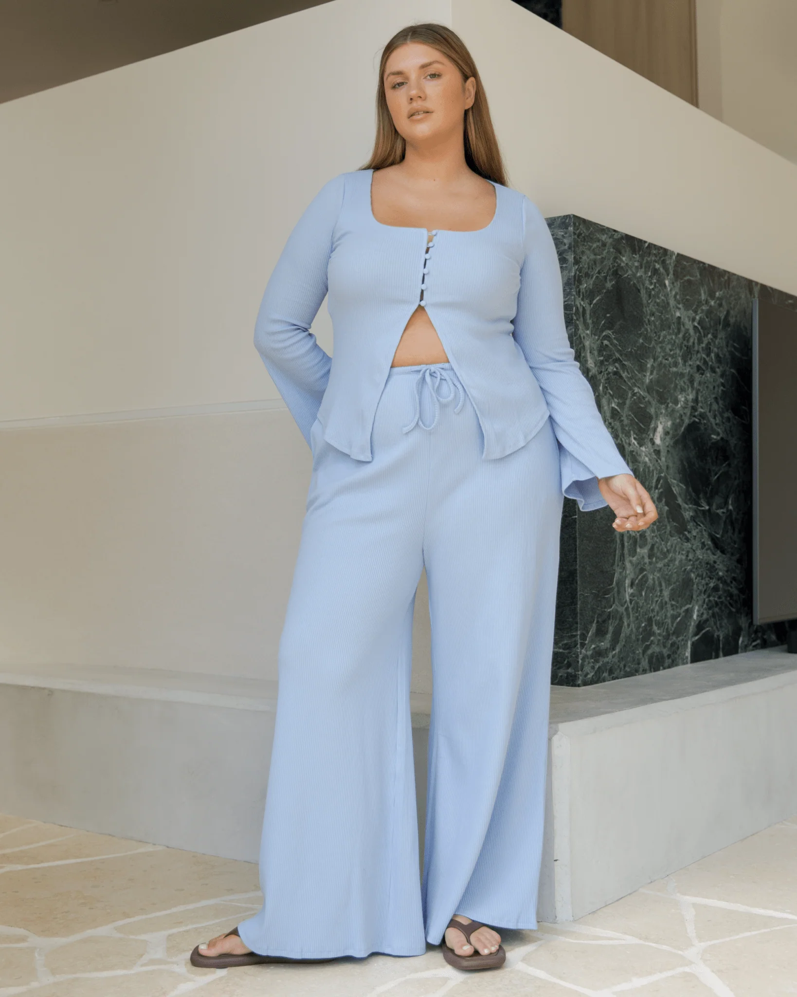 With a flattering square neckline, functional front buttons, and a subtle flared sleeve, the Marisa is equal parts comfy and cute. The ribbed fabric gives it that elevated texture you can dress up or down, while the slight front split adds a modern, playful edge.
