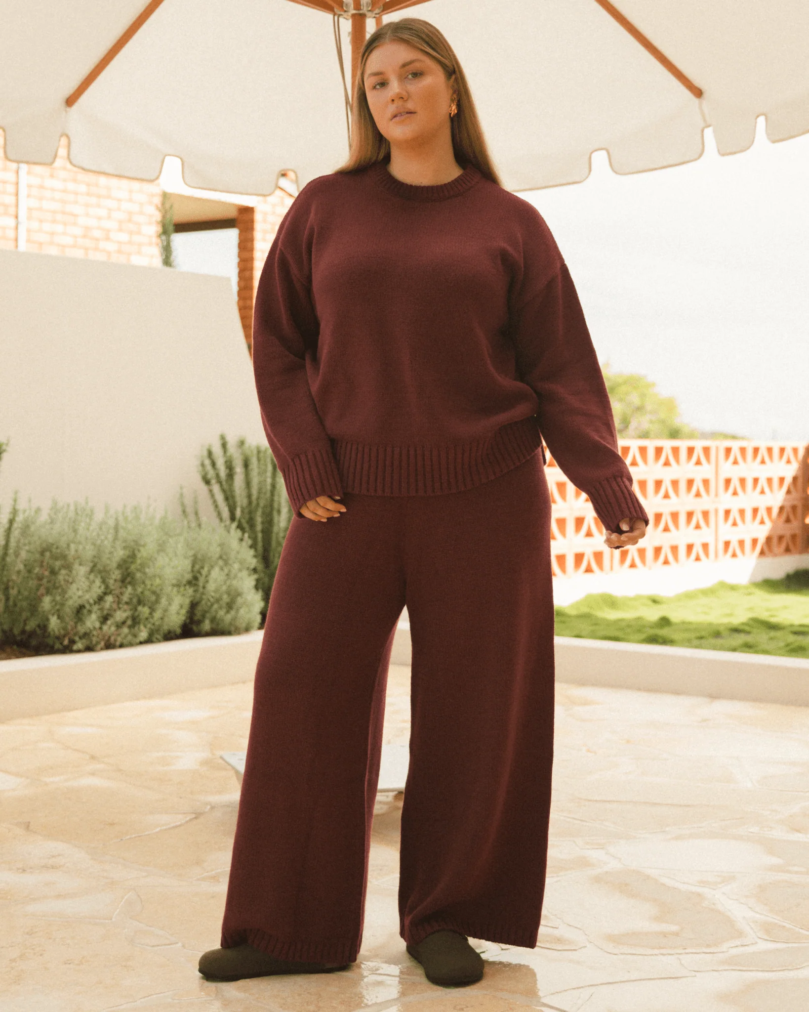 Elevate your everyday comfort with our Pearl Knit Pants in Burgundy—a warm, effortless staple perfect for cozy days and stylish lounging.